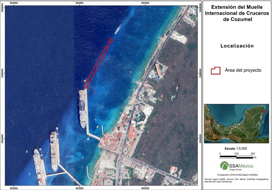 En cuanto a la extensión del Muelle Internacional de Cruceros de Cozumel, actualmente en evaluación de la Semarnat, el proyecto consiste en un conjunto de obras de infraestructura portuaria destinadas a optimizar la capacidad operativa de la terminal marítima.