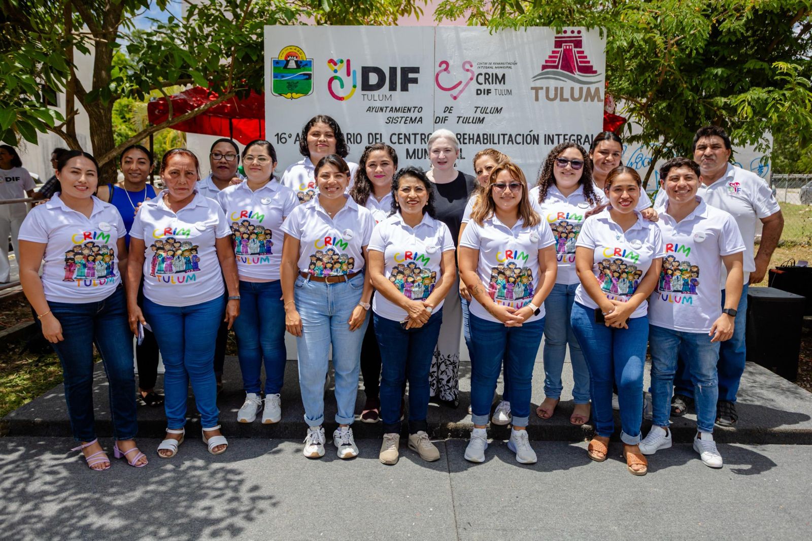 Tulum, Quintana Roo, a 22 de julio de 2025. En un ambiente de alegría y fiesta el presidente municipal Diego Castañón Trejo, la C.P. Belia Beltrán Aguilera, Directora General del Sistema para el Desarrollo Integral de la Familia (DIF), celebraron el 16º aniversario del Centro de Rehabilitación Integral Municipal de Tulum (CRIM), que ha brindado atención a cientos de niñas, niños, adolescentes, jóvenes y adultos mayores a través de terapias físicas, psicológicas, ocupacionales, de lenguaje entre otras, para mejorar la calidad de vida de las y los tulumnenses.