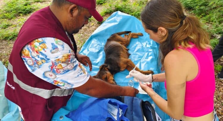 Por indicaciones de la presidenta municipal Yensunni Martínez Hernández, la canina recibió atención médica veterinaria inmediata.