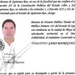 Otro exfuncionario beneficiado fue Fernando Gama Rodríguez, el exmagistrado del ya extinto Tribunal de Justicia Administrativa que fue señalado por falsear sus datos de residencia en la entidad para obtener el cargo, y que recibió “heredada” la notaría 103 de Playa del Carmen a la renuncia de la anterior titular, Angélica María Pacheco Santoyo, sólo 18 días después de haber sido nombrado su notario auxiliar.