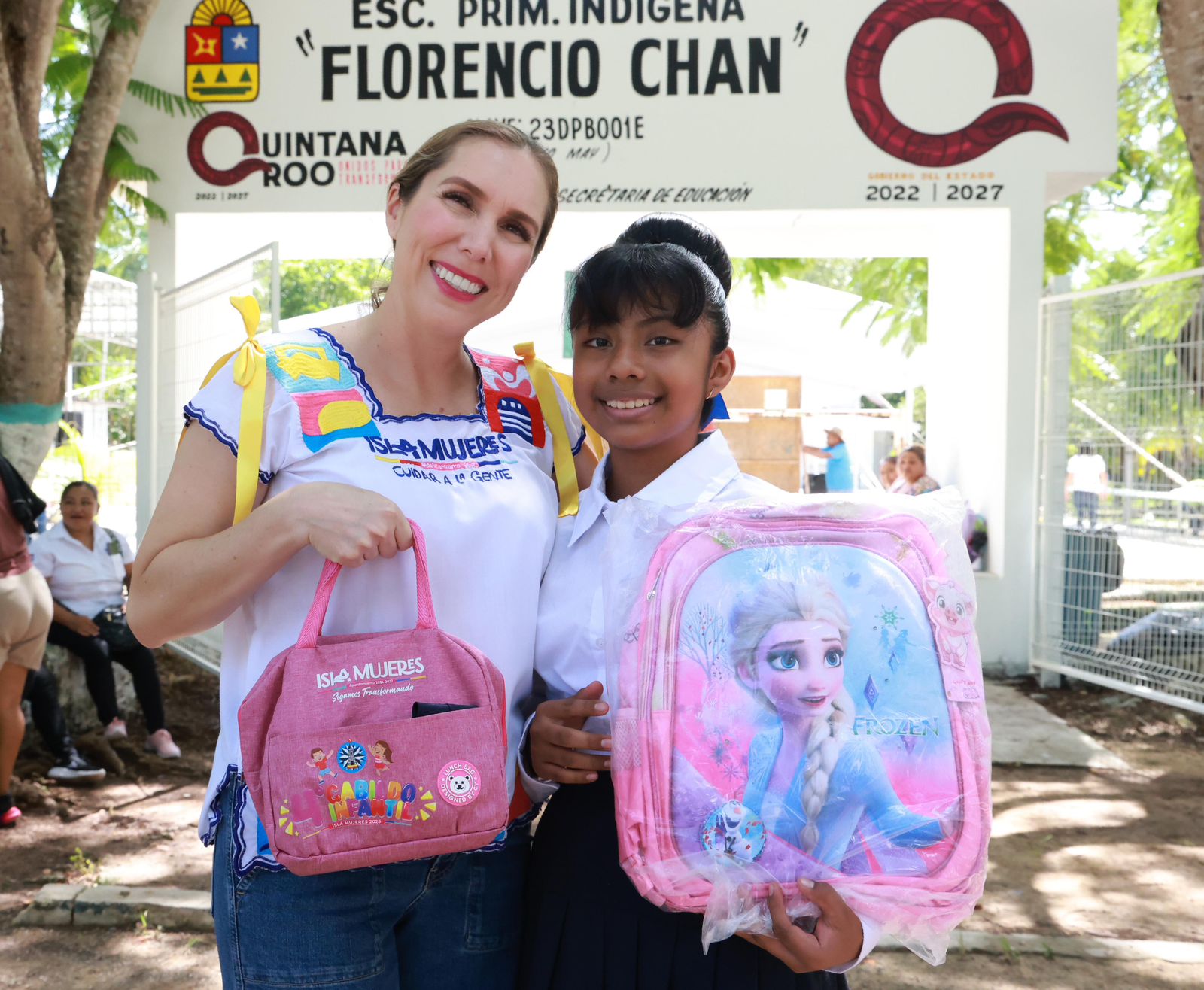 Acompañada de la Presidenta Honoraria del Sistema para el Desarrollo Integral de la Familia (DIF) Isla Mujeres, Alicia Ricalde Magaña, la alcaldesa isleña visitó la escuela Luis Donaldo Colosio, en Zona Agrícola y Florencio Chan, en Francisco May, donde aprovechó para desearles un feliz de regreso a clases a los infantes, reiterándoles qué continuará trabajando con el corazón por la niñez de Isla Mujeres.