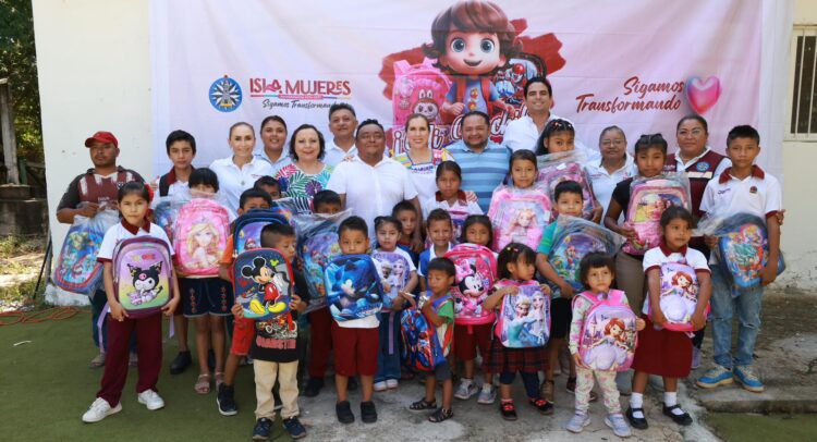 Isla Mujeres, Quintana Roo a 01 de septiembre de 2025.-La Presidenta Municipal, Atenea Gómez Ricalde, entregó mochilas nuevas del Programa Transformando la Educación: Mi Mochila, a las niñas y niños de Zona Agrícola y de la comunidad de Francisco May.