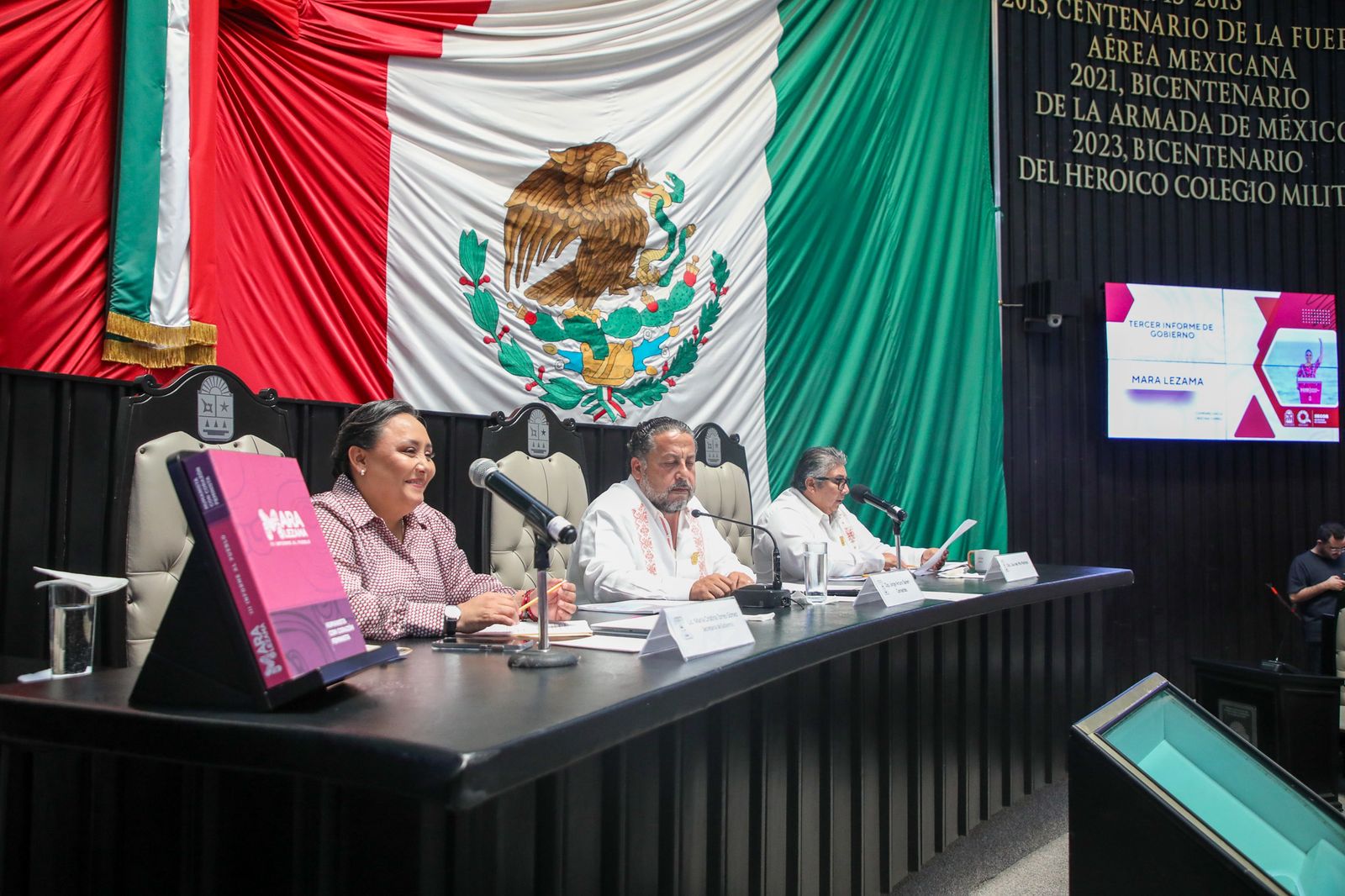 El diputado Renán Sánchez Tajonar, presidente de la Junta de Gobierno y Coordinación Política señaló que es un gran momento para profundizar en los temas abordados por la gobernadora Mara Lezama en su mensaje al pueblo con motivo de su tercer informe de gobierno.