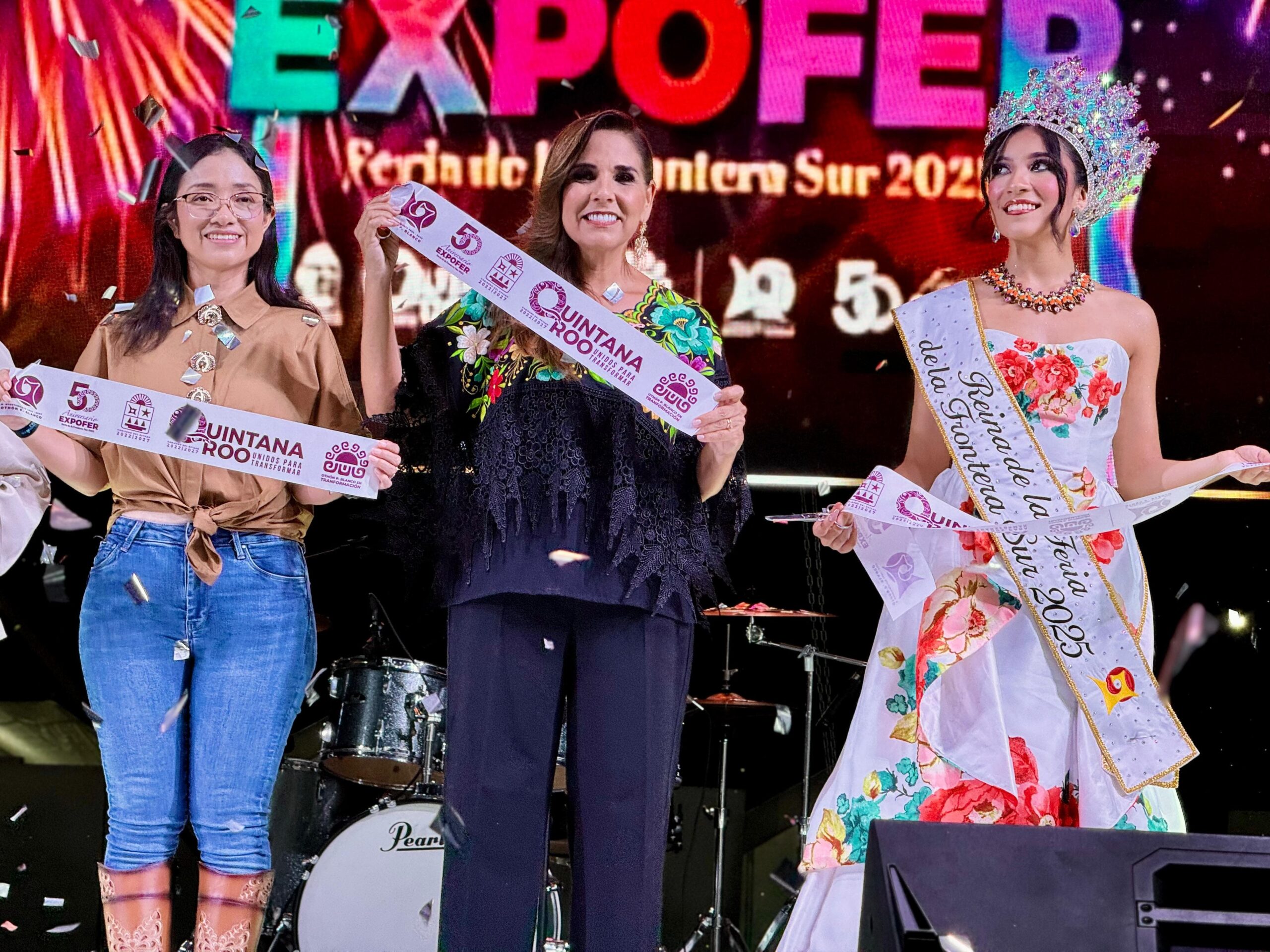 La gobernadora Mara Lezama Espinosa y la presidenta municipal Yensunni Martínez Hernández marcaron el inicio de estos festejos con la coronación de la Reina de la Expofer 2025, Naylea Monserrat Pinzon Cruz y con el corte del listón inaugural, acompañadas de la presidenta honoraria del Sistema DIF Othón P. Blanco, la Sra. Idalid Hernández Méndez; de la diputada Diana Gutiérrez García y el diputado Saulo Aguilar Bernés; de la regidora Sonia Betancourt Castro y del Teniente Coronel Médico Cirujano Gabriel Martínez Durán, en representación de la 34 Zona Militar, entre otras distinguidas autoridades invitadas.