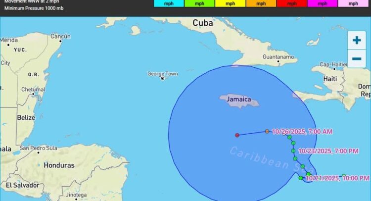 Conforme al último pronóstico emitido, ya como huracán Melissa podría dar un viraje brusco hacia el oeste la próxima semana, que lo podría dirigir hacia Centroamérica o la Península de Yucatán, en lugar de seguir la primera trayectoria que se le pronosticó y que apuntaba hacia el norte para pasar entre Jamaica y Haití en dirección al sur de Cuba.