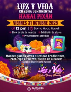 Isla Mujeres, Quintana Roo, 28 de octubre de 2025.- El Gobierno de Isla Mujeres, encabezado por la Presidenta Municipal, Atenea Gómez Ricalde, invita a todas las familias y visitantes a participar en el Festival “Luz y Vida, entre Vivos y Muertos”, este viernes 31 de octubre a las 12:00 horas en el Domo “Hugo Ravell”, en la Zona Continental.