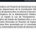 Entra iniciativa de ley que concreta la extinción del Instituto de Acceso a la Información de Quintana Roo