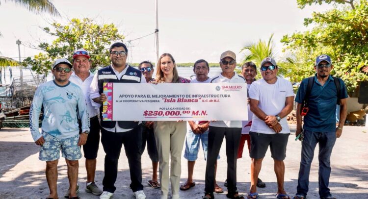 Isla Mujeres, Quintana Roo, 7 de noviembre de 2025.– Con el firme compromiso de fortalecer la economía del sector pesquero y mejorar sus instalaciones de trabajo, la Presidenta Municipal de Isla Mujeres, Atenea Gómez Ricalde, entregó un apoyo económico de 250 mil pesos a la Cooperativa Isla Blanca, como parte del Programa de Apoyo para el Mejoramiento de Infraestructura para las Cooperativas Pesqueras, financiado con recursos 100% municipales.