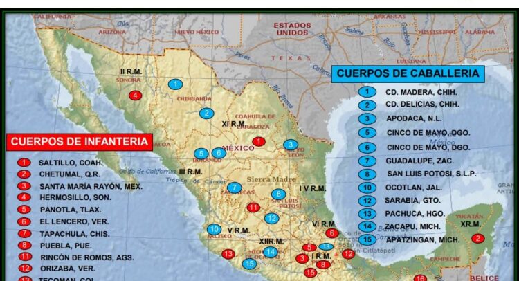 En México operaban hasta la fecha de esta disposición 31 cuerpos, 15 de caballería y 16 de infantería, en los estados de Chihuahua, Durango, Guanajuato, Hidalgo, Jalisco, Michoacán, Nuevo León, San Luis Potosí y Zacatecas los de caballería, y en Aguascalientes, Chiapas, Coahuila, Colima, Estado de México, Morelos, Oaxaca, Puebla, Sonora, Tlaxcala, Veracruz y Quintana Roo los de infantería.