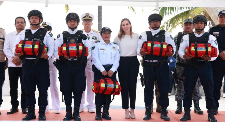 Durante el acto protocolario, la alcaldesa isleña entregó kits de emergencia y radios de última tecnología, con la finalidad de que las y los elementos cuenten con las herramientas suficientes para actuar con inmediatez en caso de registrarse alguna eventualidad.
