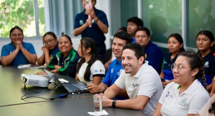 Durante la reunión, Renán Sánchez Tajonar reconoció el esfuerzo, talento y compromiso ambiental del grupo estudiantil que integra el proyecto BIOCEIIA (Biocentro de Conservación, Emprendimiento, Innovación e Investigación de Abejas Nativas), conformado por jóvenes de diversas ingenierías —Gestión Empresarial, Administración, Desarrollo Comunitario y Sistemas Computacionales— quienes trabajan para la conservación de la Melipona beecheii, la “abeja sagrada maya”.