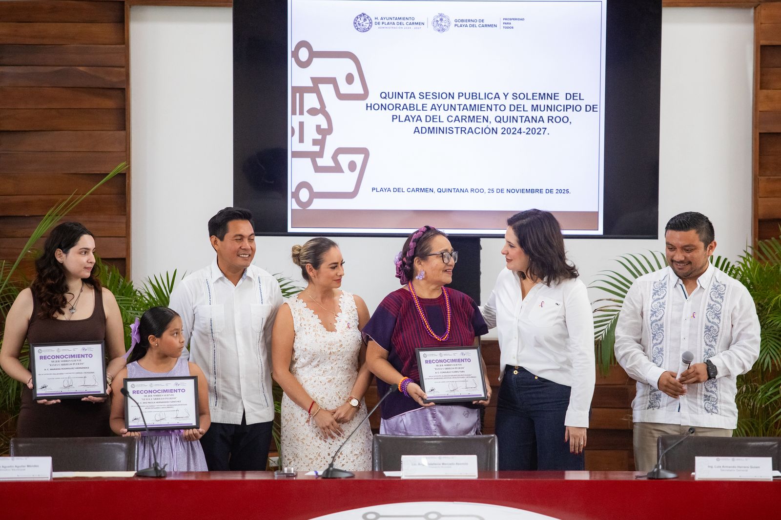 La ceremonia se realizó en el Salón “Leona Vicario” del Nuevo Palacio Municipal, con la presencia de representantes de los sectores académico, artístico y comunitario. En el evento, la Alcaldesa entregó galardones a tres mujeres cuya labor ha contribuido al desarrollo de Playa del Carmen: