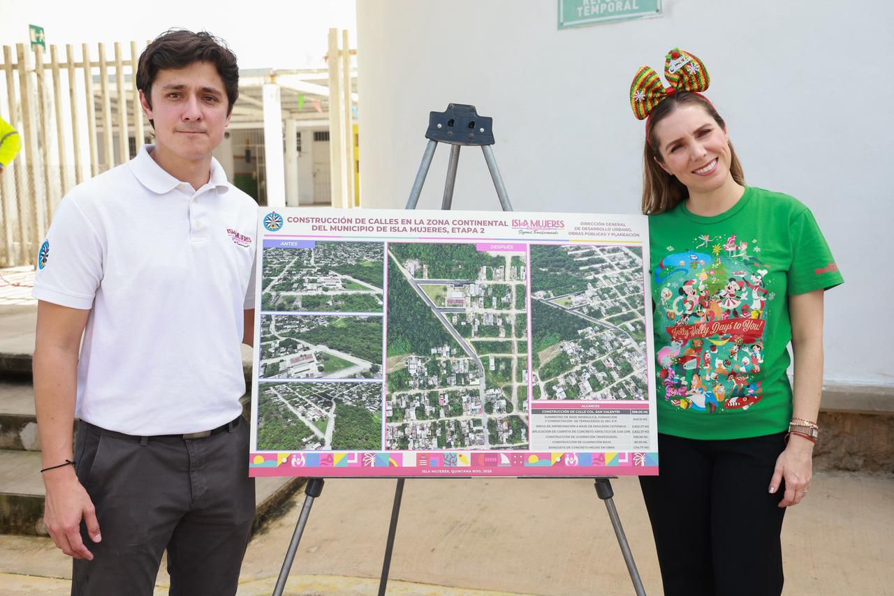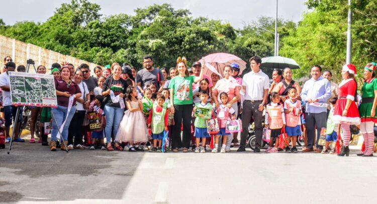 Isla Mujeres, Quintana Roo, a 10 de diciembre de 2025.- Cumpliendo un compromiso más con las familias de Ciudad Mujeres y con el objetivo de dignificar los accesos a las escuelas, la Presidenta Municipal de Isla Mujeres, Atenea Gómez Ricalde, entregó hoy la obra de pavimentación de la calle de acceso principal al kínder Matilde Petra Montoya Lafragua, ubicado en la colonia San Valentín de la Zona Continental.