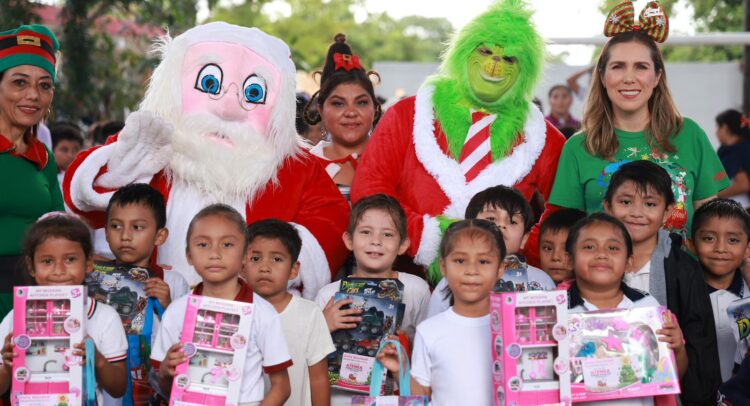 Acompañada de personajes navideños como Santa, el Muñeco de Nieve y El Grinch, Atenea Gómez recorrió esta mañana los jardines de niños Juan de la Barrera y Matilde Petra Montoya Lafragua, así como las primarias Enrique Estrella Oxté y Centenario de la Constitución.