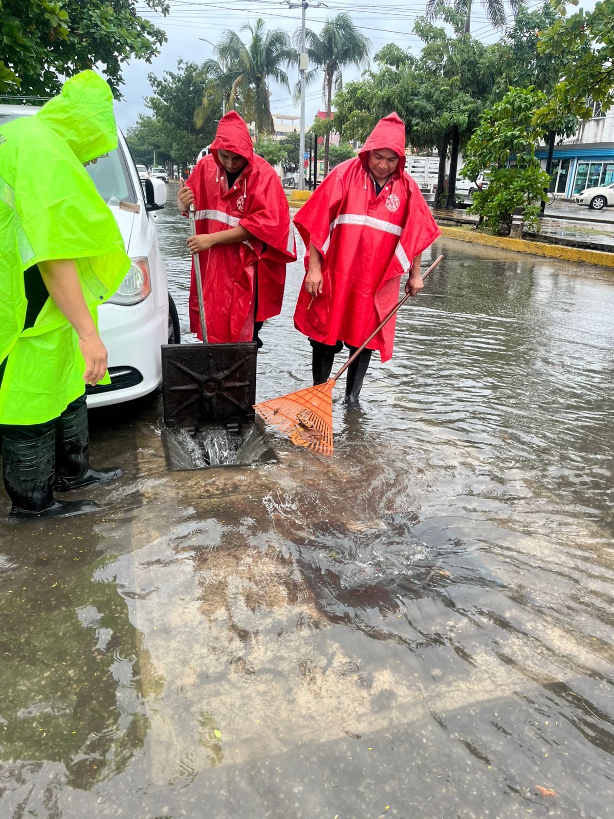 La Secretaría de Protección Civil, Prevención de Riesgos y Bomberos, en coordinación con la Secretaría de Servicios Públicos Municipales, mantiene personal operativo desplegado en distintos puntos del municipio, realizando recorridos preventivos, monitoreo de zonas vulnerables, atención de reportes ciudadanos, limpieza de rejillas y acciones inmediatas para reducir riesgos.