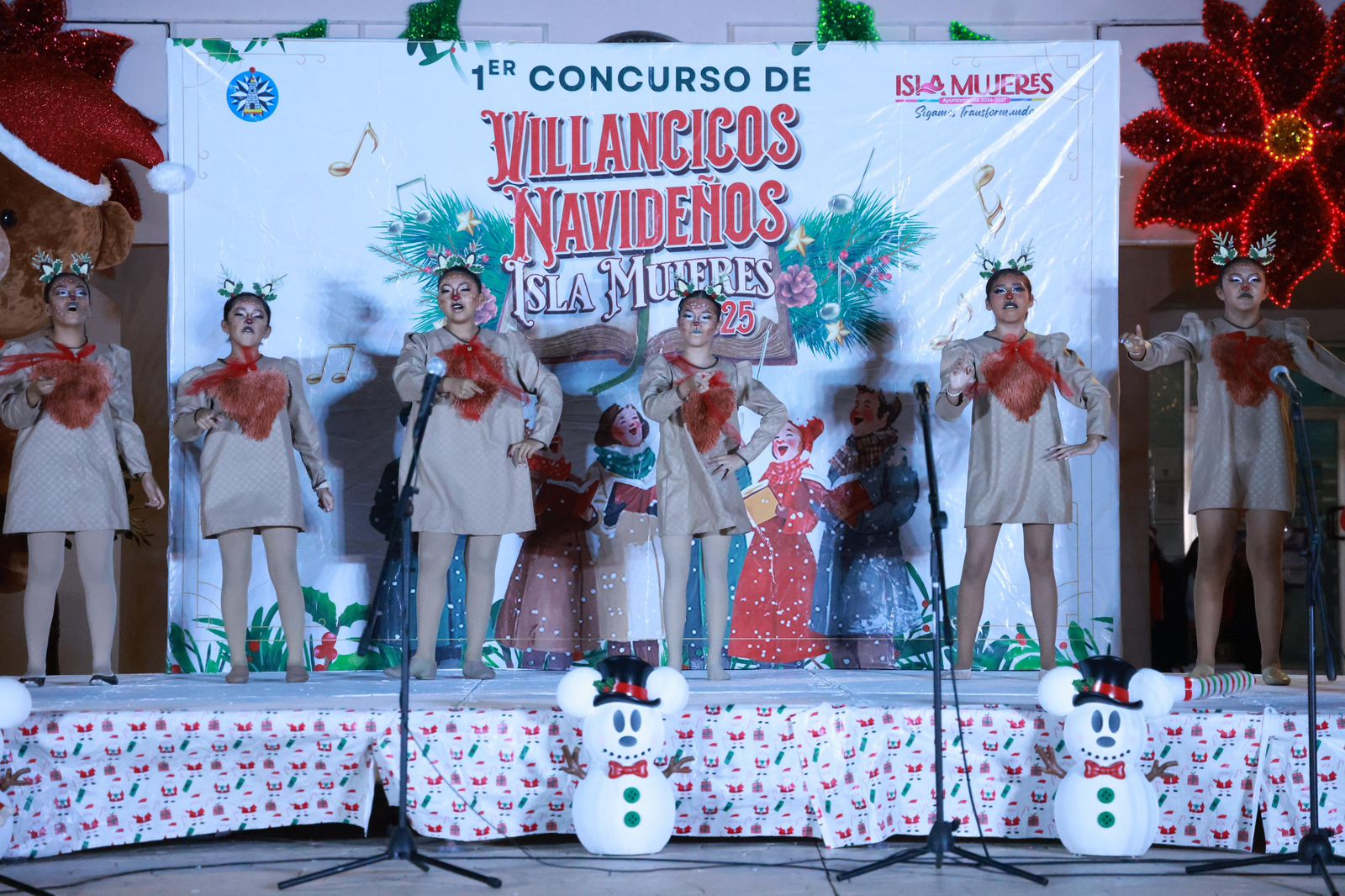 Isla Mujeres, Quintana Roo, 21 de diciembre de 2025.- Con el objetivo de visibilizar el talento local y fortalecer la convivencia familiar durante la temporada decembrina, el Gobierno Municipal , que encabeza la alcaldesa, Atenea Gómez Ricalde, llevó a cabo el Primer Concurso de Villancicos Navideños en la Explanada Municipal de Isla Mujeres