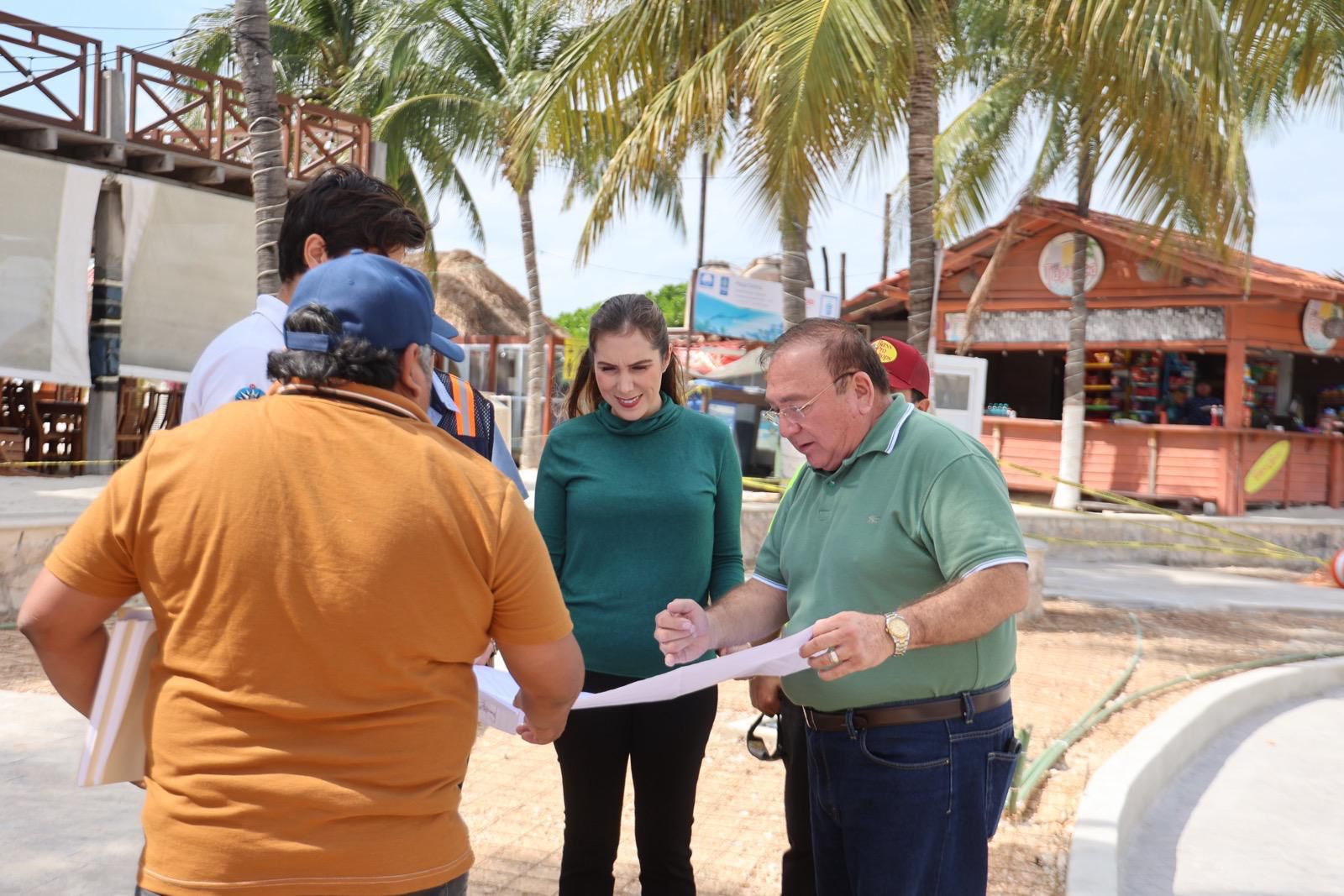 Atenea Gómez Ricalde supervisa avances de la obra integral en el malecón y avenida de la Rueda Medina en Isla Mujeres