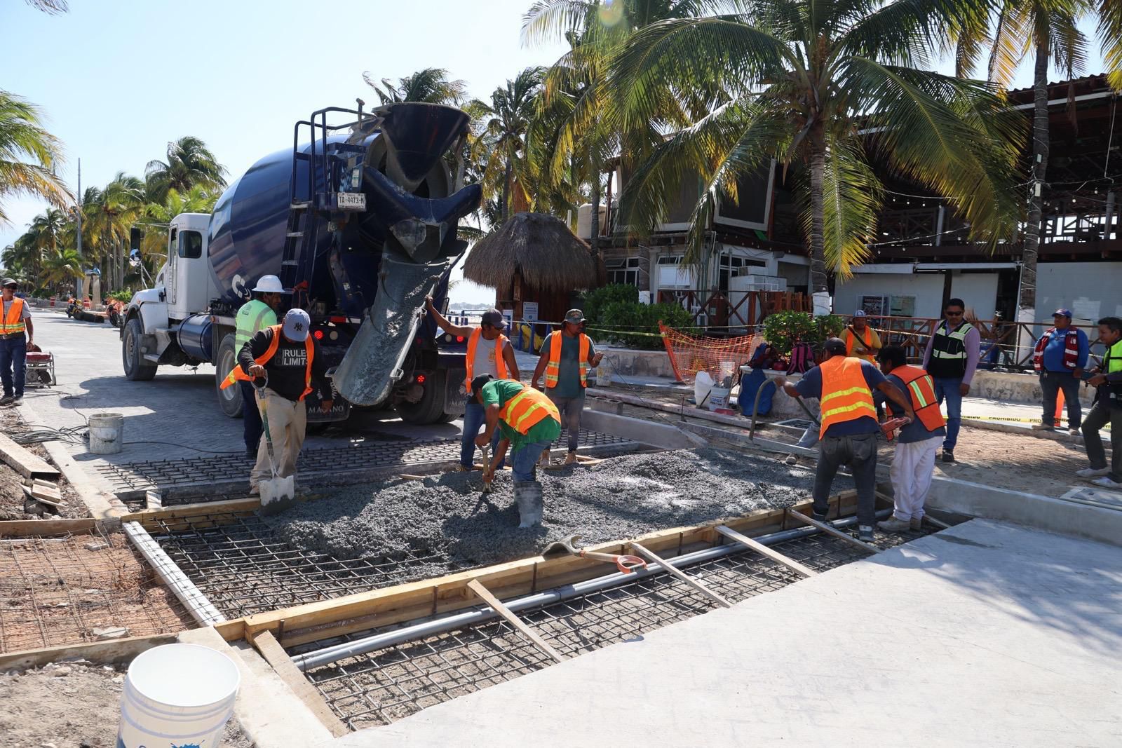 Durante su visita, la alcaldesa verificó el armado y colado de uno de los nuevos pasos peatonales que requería la avenida, infraestructura que permitirá ordenar el cruce de peatones, elevar la seguridad vial y mejorar la accesibilidad para familias isleñas, personas adultas mayores, niñas y niños, así como para visitantes.