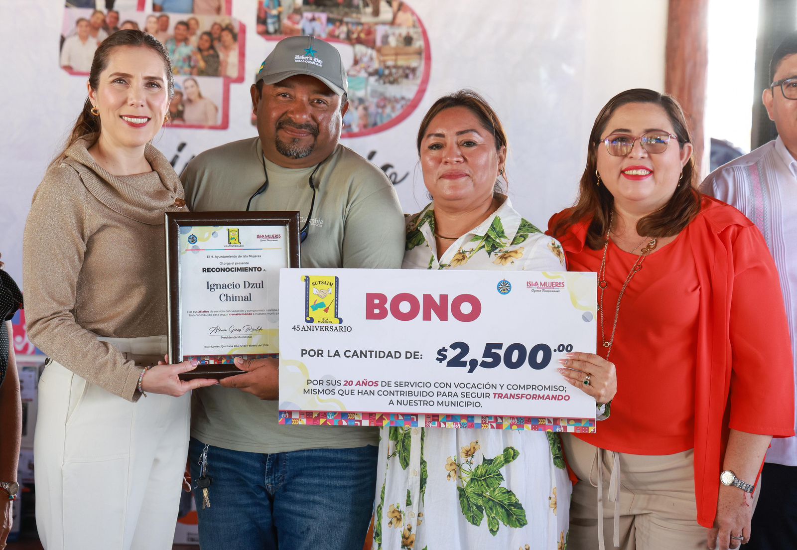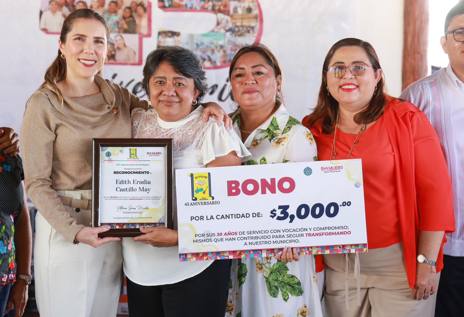 Isla Mujeres, Quintana Roo, 12 de febrero de 2026.- La Presidenta Municipal de Isla Mujeres, Atenea Gómez Ricalde, acompañó a las y los trabajadores del Sindicato Único de Trabajadores al Servicio del Ayuntamiento de Isla Mujeres (SUTSAIM) en la celebración de su 45 aniversario, donde reconoció la invaluable labor, trayectoria y compromiso de las y los trabajadores sindicalizados que, con su esfuerzo diario, fortalecen el funcionamiento del Gobierno Municipal y la atención a la ciudadanía.