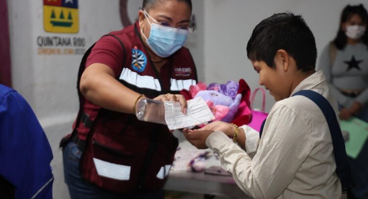 Como ha sido instrucción de la alcaldesa, desde el inicio de la jornada, personal de la Dirección General de Desarrollo Social acudió muy temprano a la Primaria “Andrés Quintana Roo” para brindar información y entregar cubrebocas y gel antibacterial, con la finalidad de reforzar el protocolo y las medidas sanitarias para prevenir contagios.