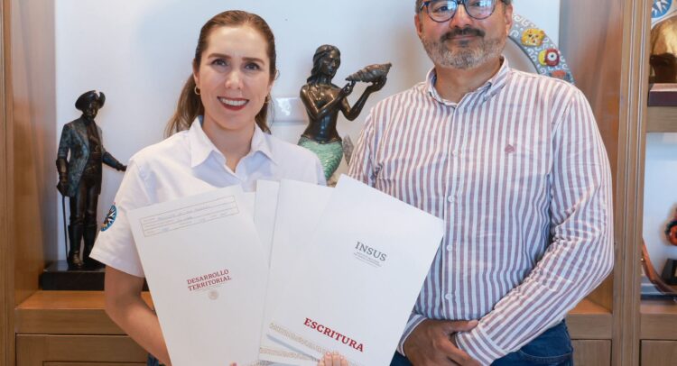 Durante el encuentro con Julio Alfonso Ortegón Espadas, Director de Gestión del INSUS, la alcaldesa informó que con estas escrituras, cinco espacios públicos en La Guadalupana, El Oasis, La Loma y Nueva Tierra quedan legalmente registrados a nombre del Ayuntamiento.