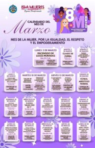 A lo largo del mes se desarrollarán clases de activación física, talleres de defensa personal, jornadas comunitarias, pláticas de nutrición y desarrollo personal, además de espacios de expresión y participación como “Voces que Sueñan” y el Cabildo de Mujeres. También se contemplan foros juveniles, encuentros culturales y actividades enfocadas en la reflexión, el fortalecimiento de la autoestima y la autonomía.