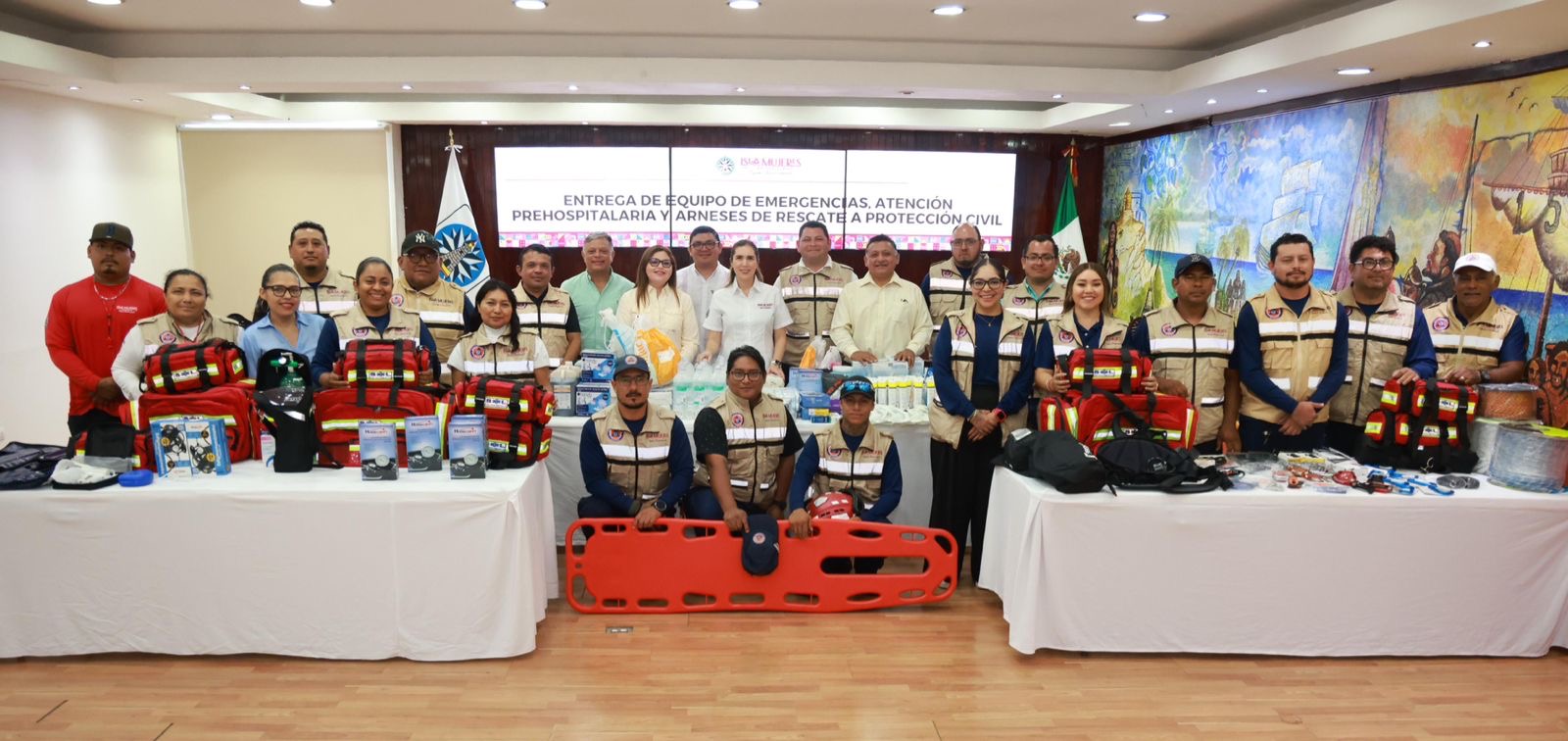 Entre los equipos nuevos entregados se encuentra un kit especializado de rescate vertical, integrado por cuerdas, mosquetones y arnés de grado profesional, equipo indispensable para realizar maniobras seguras en zonas de riesgo como los acantilados de Punta Sur o estructuras elevadas. Este material permitirá a los elementos actuar con mayor rapidez y precisión en situaciones donde cada minuto puede marcar la diferencia entre la vida y la muerte.
