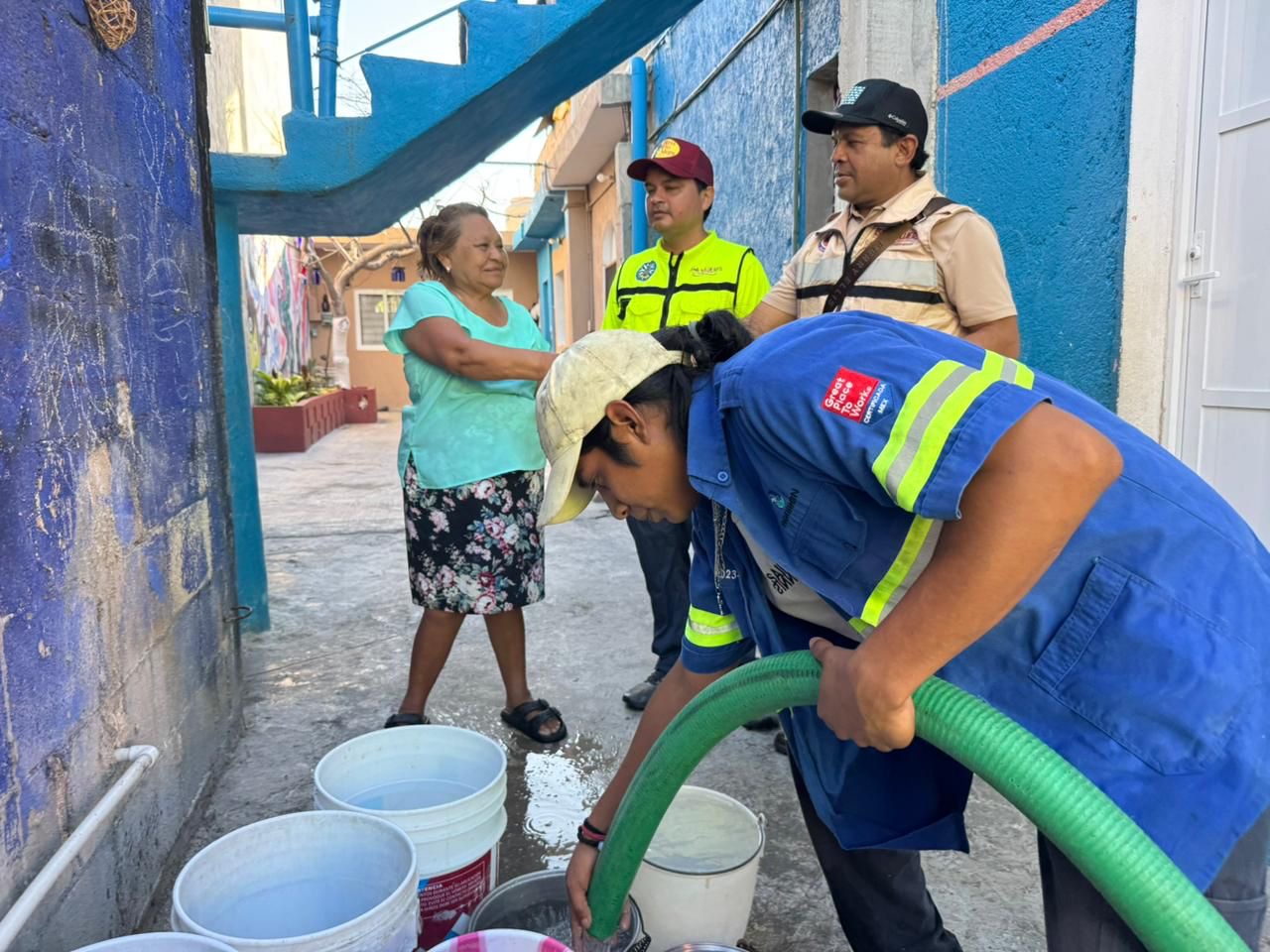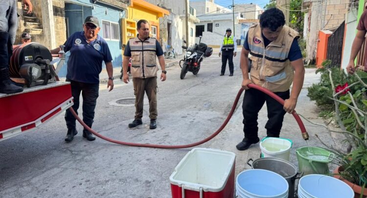La concesionaria informó que siguen trabajando en la fuga en la tubería que abastece a la Isla, sin embargo, desde hoy en coordinación con la empresa se inició con el suministro del agua de casa en casa en diferentes colonias populares.