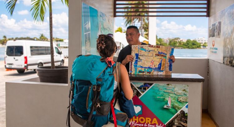 Chetumal, 14 de marzo. Con el objetivo de fortalecer la orientación que se brinda a las y los visitantes que llegan a la capital del estado, el gobierno municipal une esfuerzos con el Tren Maya.