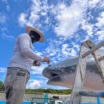 Durante esta semana, personal del Ayuntamiento realiza labores de pintura y mejoramiento en diversos puntos emblemáticos de la isla, entre ellos Punta Sur, la Explanada Municipal, el Monumento al Tiburón Ballena y el parador fotográfico ubicado en el Malecón Oriente.